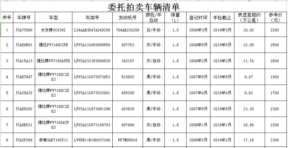 成都市公共资源交易服务中心网站;中国拍卖行业协会网站;四川勃森拍卖有限公司网站及微信公众号;华西都市报。